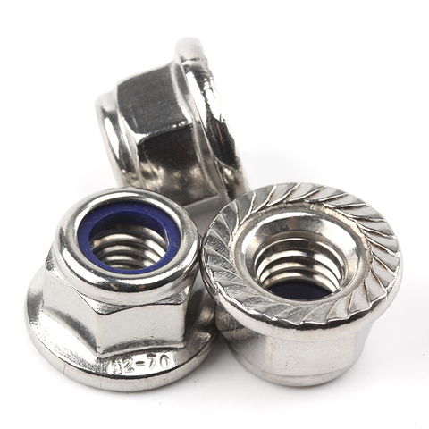 صواميل قفل سداسية مسننة بحافة من الفولاذ المقاوم للصدأ A2-70 مع حشوة نايلون مقاومة للتآكل وفقًا لمعيار DIN 6926